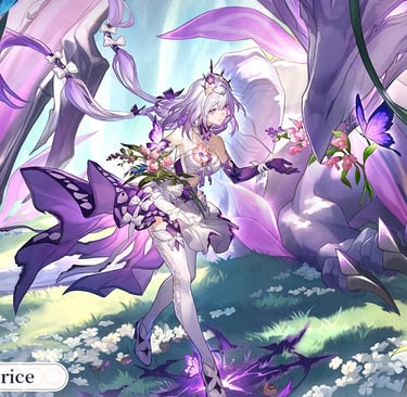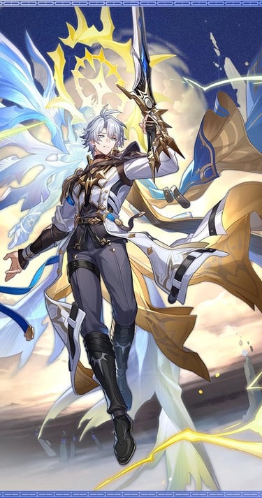 Lore-wise, she’s introduced as the Emissary of the Chrysos Heir, an enigmatic envoy from the Amphoreus depths. Stoic and seemingly detached, she wields crystalline constructs that resonate with lingering souls — each strike of her fan-like weapon releases a haunting shimmer of frost, eroding both body and will. Where other characters burn bright, Cyrene unmakes heat itself.