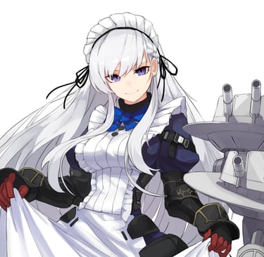 Belfast is beauty in elegance — the silver-haired maid who balances grace, power, and that irresistible waifu charm.
